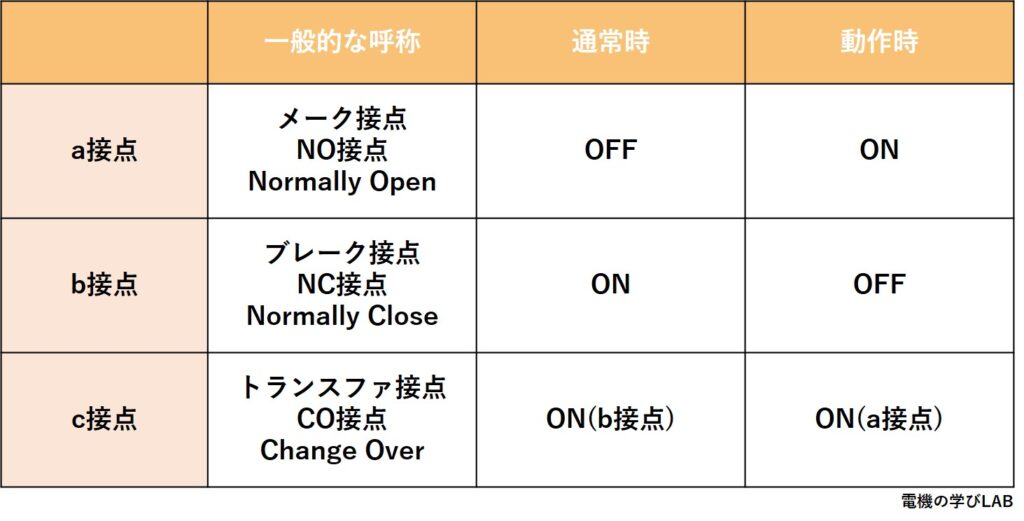 • 名称:a接点、メーク接点、NO接点(Normally Open)